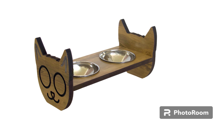 ظرف غذای گربه دوکاسه ای مدل گربه چشم درشت